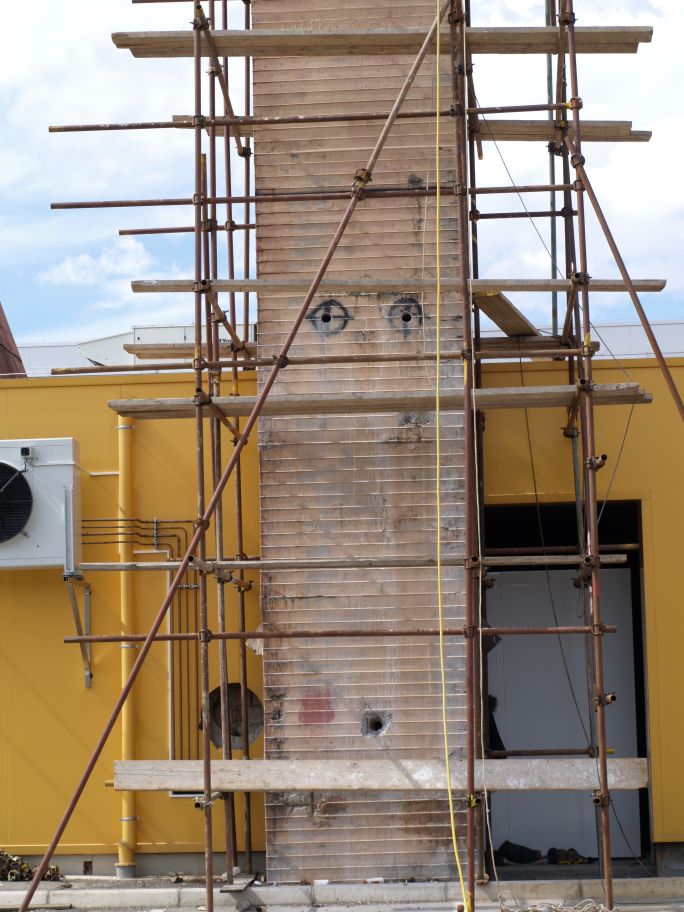 - 1. DAN: Pripremni radovi – slaganje skele i bušenje rupa za braganje.